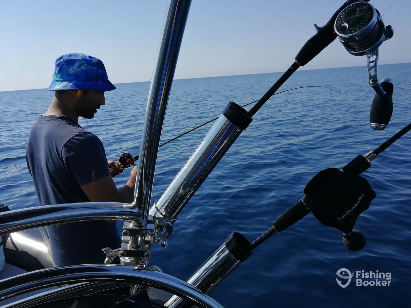 Your vessel for the day is a 20’ Indigo inflatable outboard fishing boat in Halkidiki. She comes with top-of-the-line Simrad navigational technology, fishing equipment, and safety gear. You’ll have a cover for shade, downriggers for trolling, a live bait tank, tuna tubes, and wireless trolling motor for stealthy action.