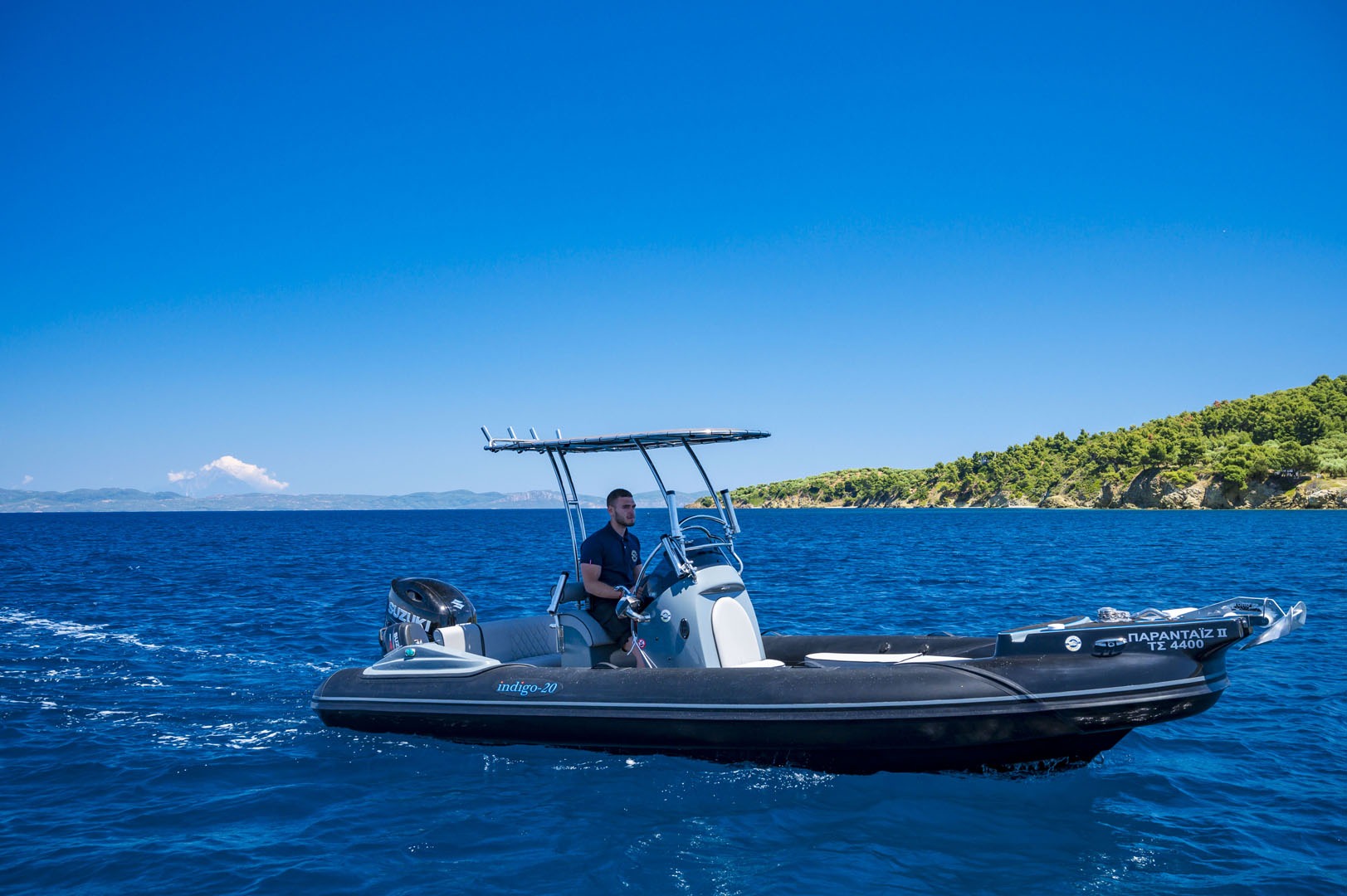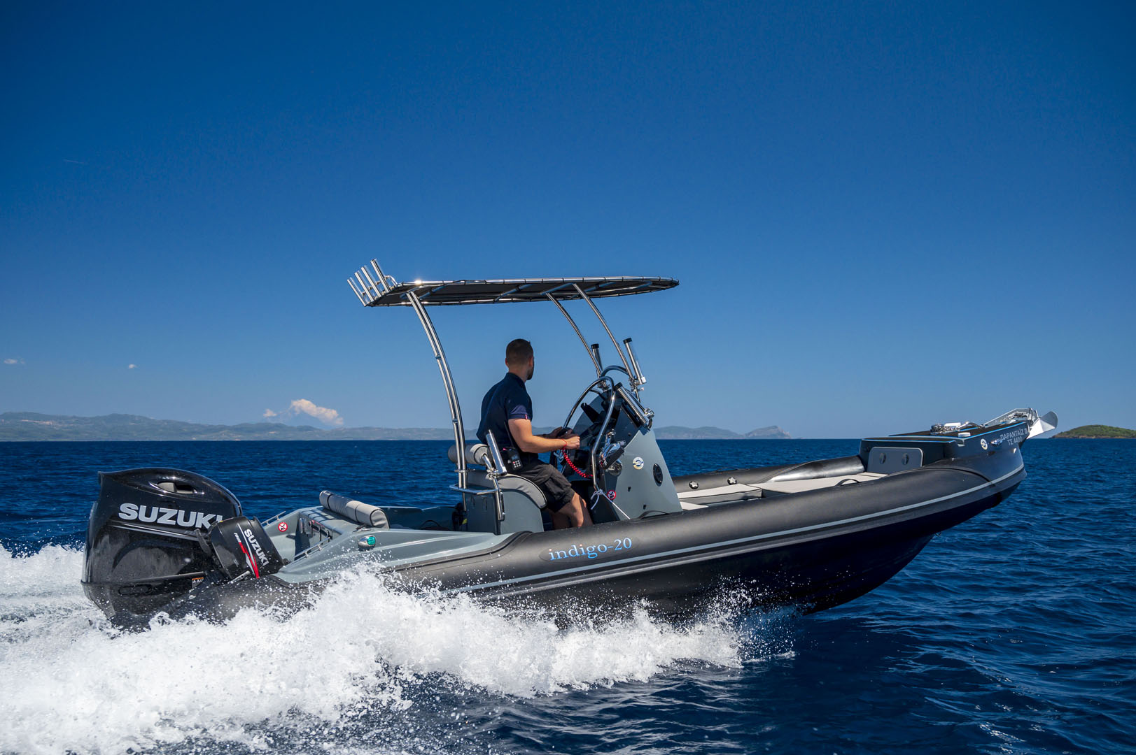 Paradise II-Indigo 20 is one of the safest RIB (Rigid Inflatable Boat) in its category because it is constructed based on latest technologies which make it lighter and ensure that it is unsinkable, reliable and durable! At the same time its modern design allows for a spacious deck to accommodate comfortably a family.